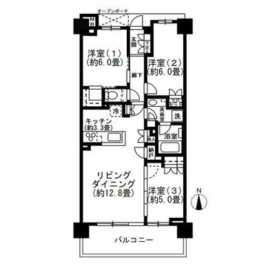 | 間取り | 3LDK(洋6、洋6、洋6、LDK12.8) | 主要採光面 | 南 |
